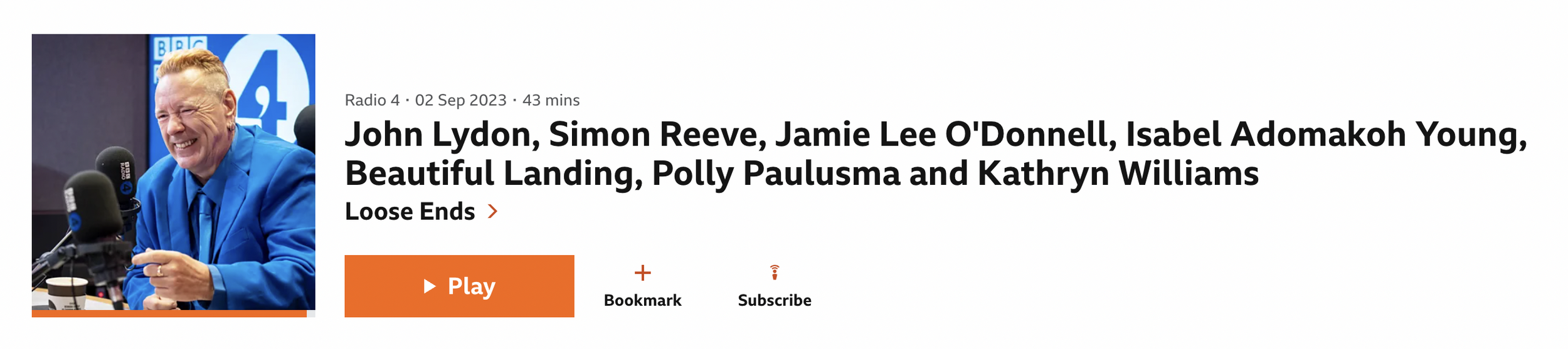 BBC Radio 4 Loose Ends: Clive Anderson and Arthur Smith are joined by guests for an eclectic mix of conversation, music and comedy. With music from Polly Paulusma & Kathryn Williams, and Beautiful Landing.